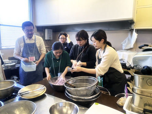 職場以外の外国人や地元の大学生と、日本文化や多文化の情報交換を行っています。